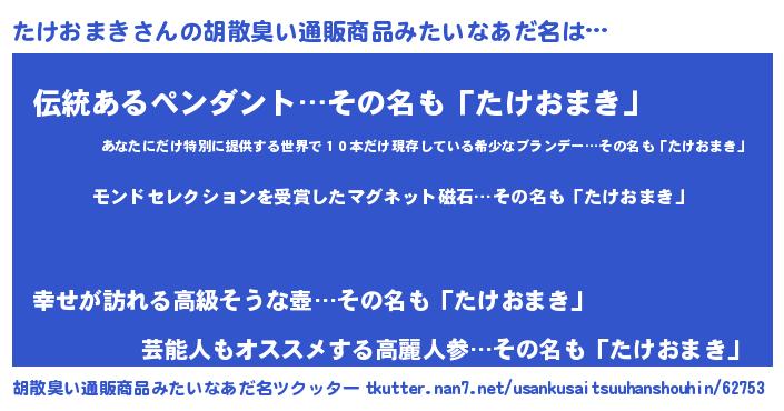 たけおまきさんの胡散臭い通販商品みたいなあだ名をツクッター!
