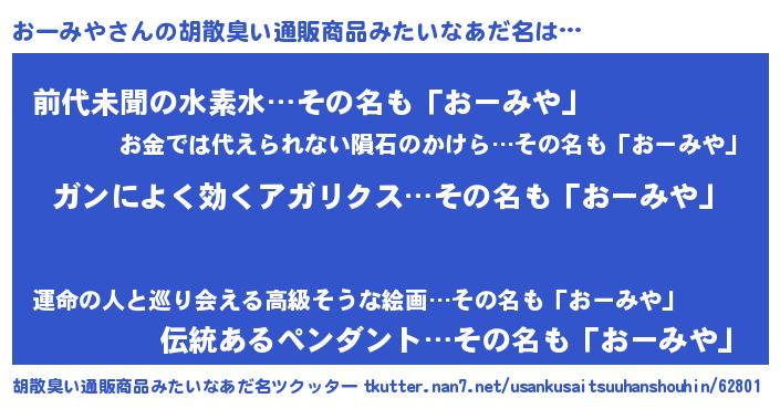 | 意味不明あだ名 | 『しいたけ科おーみや属』『自称おーみや』 |