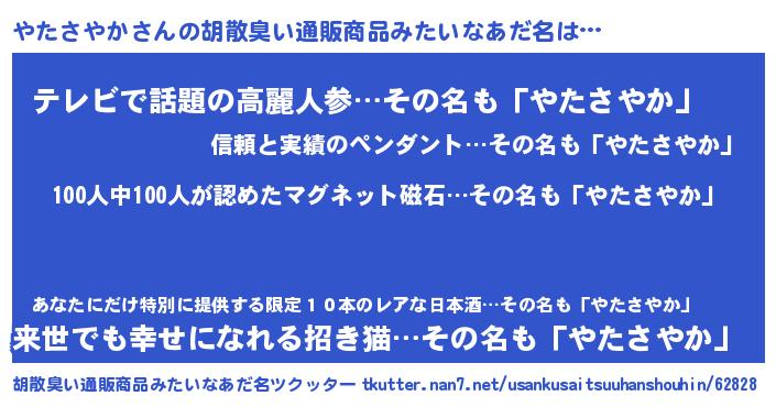 | ヘコむあだ名 | 『やたさやか(笑)』『やたを』 |