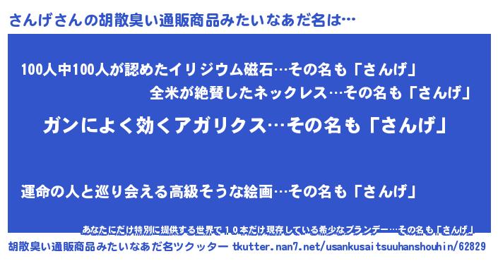 | ヒーロー風カッコイイあだ名 | 『超時空戦士サンゲ』『正義の使者さんげ』 |