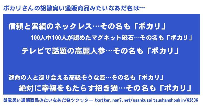 | ヘコむあだ名 | 『ポカお』『ポカリ(笑)』『なまこ酢』 |