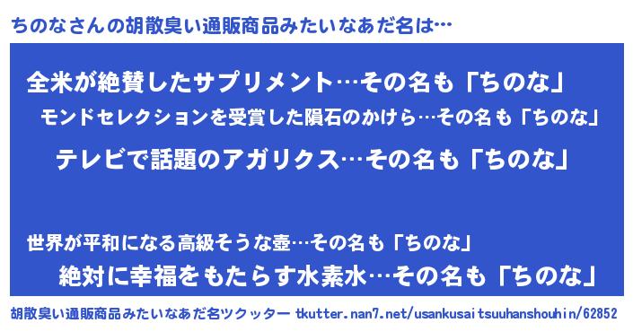 | ヘコむあだ名 | 『ちのっぺ』『ちのな(爆)』 |