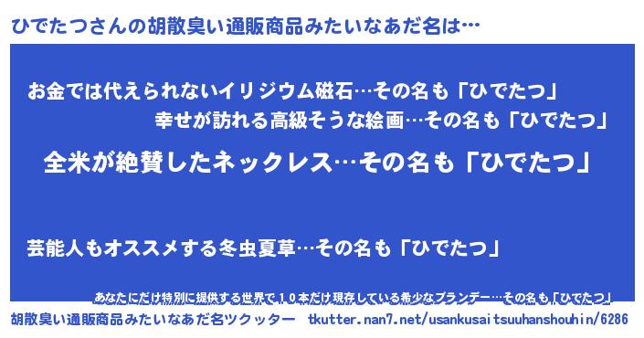 ひでたつさんの胡散臭い通販商品みたいなあだ名をツクッター!