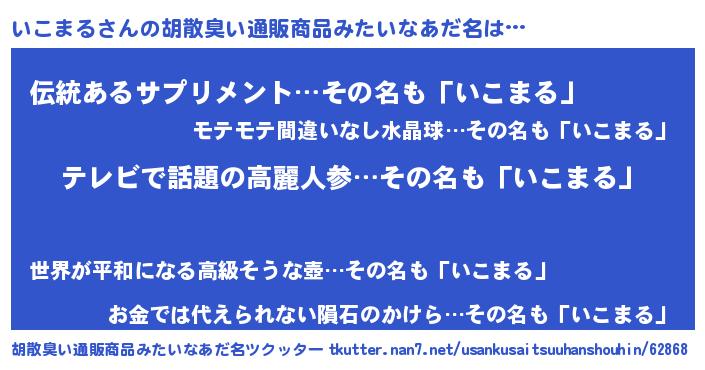 | 女子向けラノベタイトル風あだ名 | 『闇のいこまる』『いこまる恋絵巻』 |