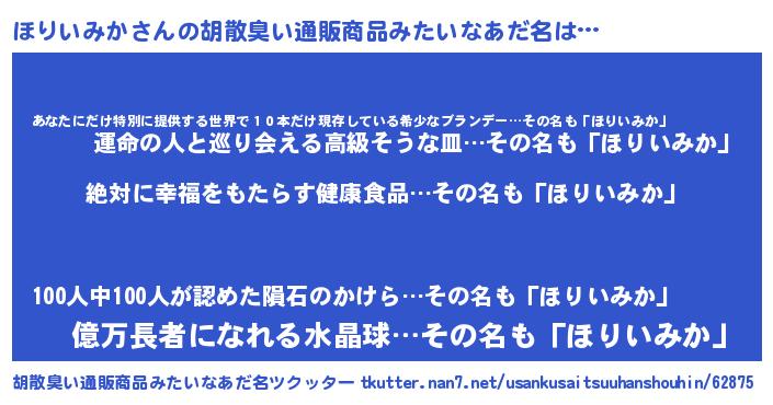| ヘコむあだ名 | 『ほりいみか(爆)』『ほりっふぃ~』 |