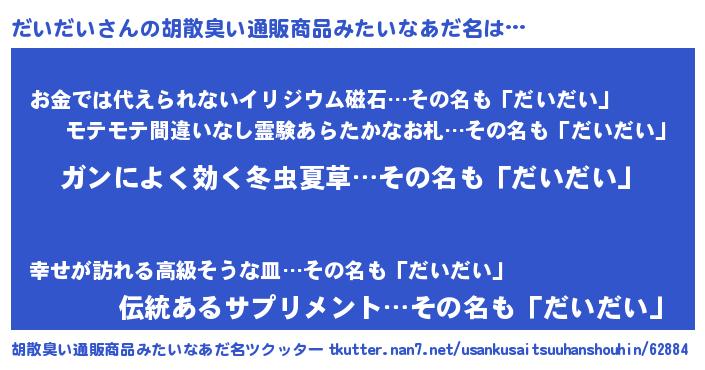 | 意味不明あだ名 | 『自称だいだい』『ペロリンだいだい』 |