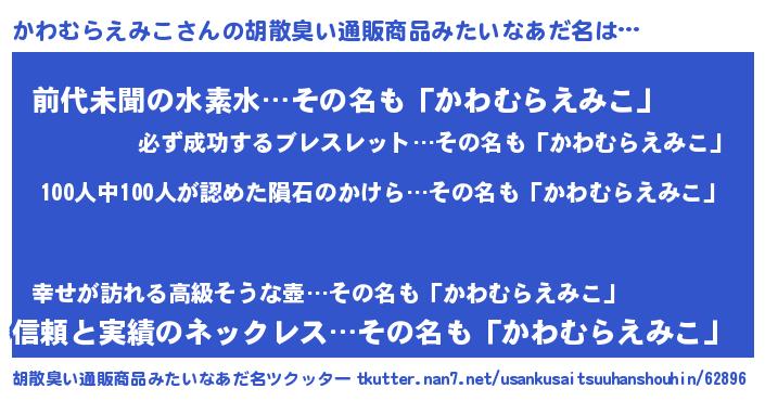 | ヘコむあだ名 | 『かわむらえみこ(震え声)』『かわっちょ』 |
