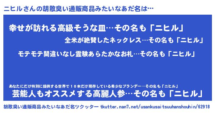 | ヒーロー風カッコイイあだ名 | 『スーパーニヒル』『ウルトラニヒルマン』 |
