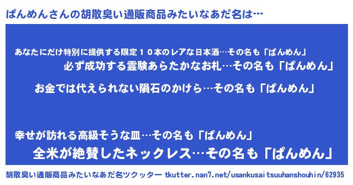 | ヒーロー風カッコイイあだ名 | 『慈愛の使者ぱんめん』『仮面パンダー』 |
