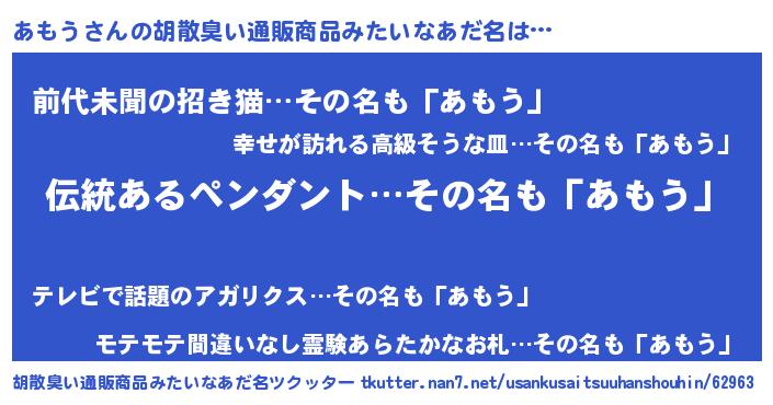 | 意味不明あだ名 | 『とにかく怪しいあもう』 |