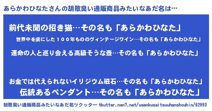 | 意味不明あだ名 | 『あらかわひなたフォーエバー』 |