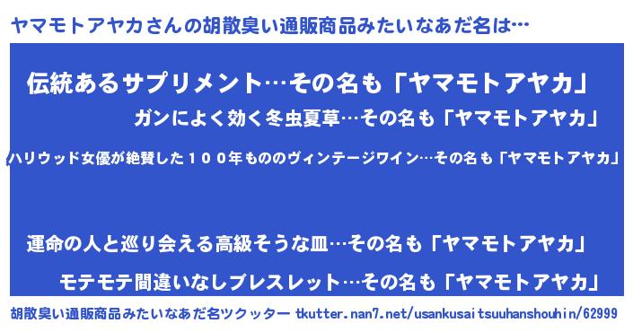 | 意味不明あだ名 | 『住所不定無職ヤマモトアヤカ(13歳)』 |