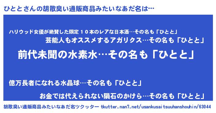 | ヘコむあだ名 | 『ひとと(遠い目)』『ひとにゅー』 |