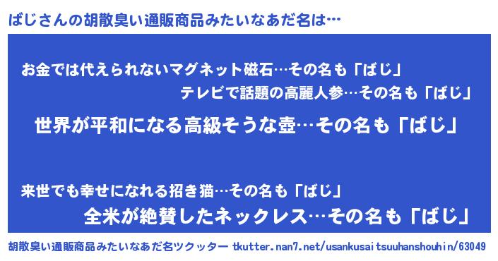 | ヘコむあだ名 | 『豆乳』『ばじを』『ばじ(爆)』 |