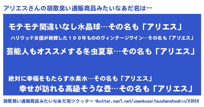 | 自動車の名前っぽいあだ名 | 『メルアリス・アンツ』『アリティマ』 |