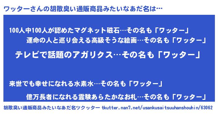 | ヒーロー風カッコイイあだ名 | 『最強戦士ワッター』『スーパーワッター』 |