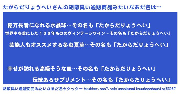 | 意味不明あだ名 | 『自称たからだりょうへい』 |