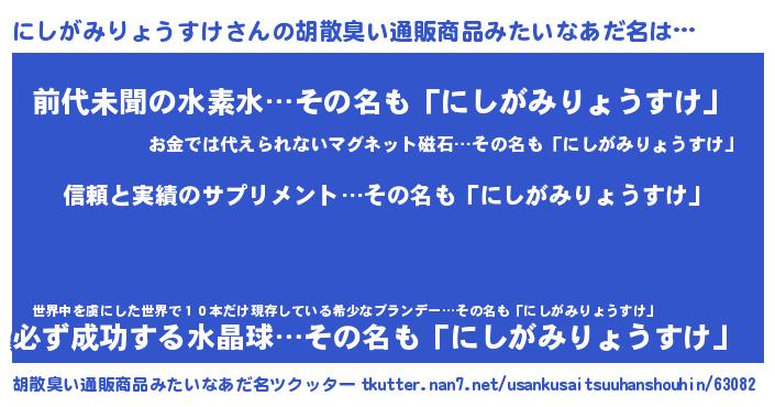 | 意味不明あだ名 | 『とにかく怪しいにしがみりょうすけ』 |