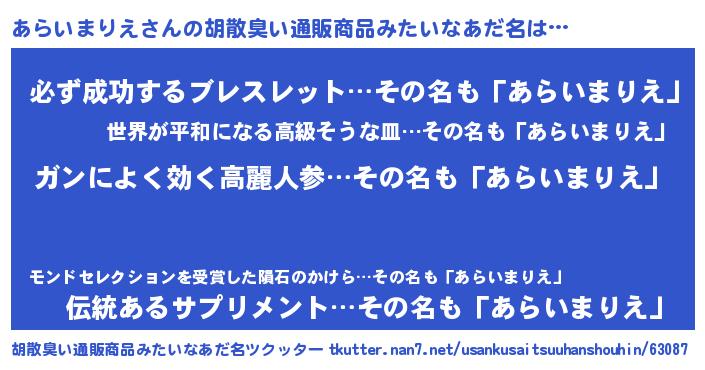 | 意味不明あだ名 | 『自称あらいまりえ』 |