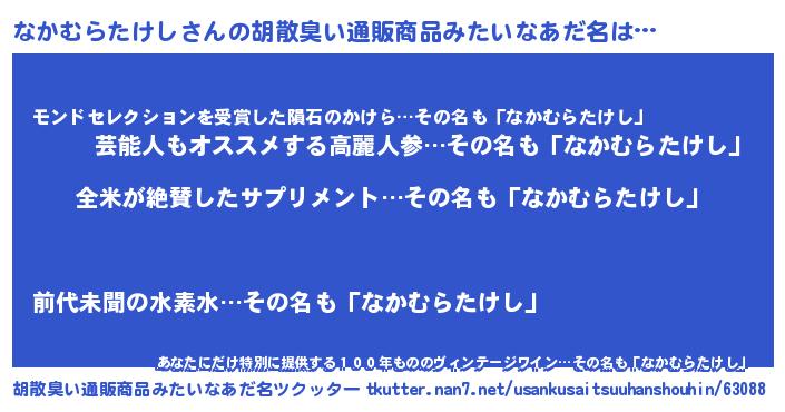 | 意味不明あだ名 | 『とにかく怪しいなかむらたけし』 |