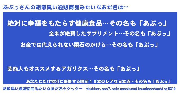 | ヘコむあだ名 | 『あぷっ(遠い目)』『あぷっ子』 |