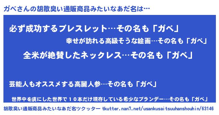 | ヘコむあだ名 | 『ガべっ子』『ガべにー』『豆乳』 |