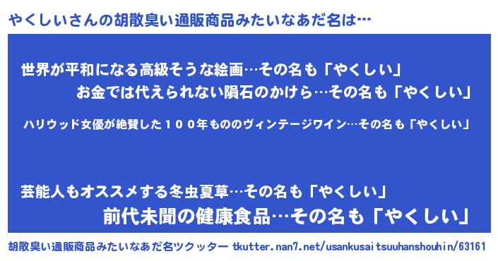 | 意味不明あだ名 | 『住所不定無職やくしい(10歳)』 |