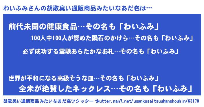 | ヘコむあだ名 | 『わいっふぃ~』『わいふみ(笑)』 |