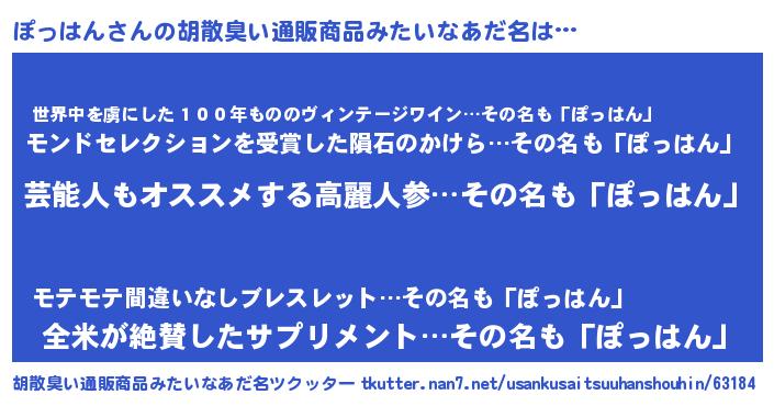 | 意味不明あだ名 | 『自称ぽっはん』『ペロリンぽっはん』 |