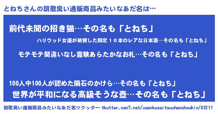 | ヘコむあだ名 | 『とねっふぃ~』『とねち(笑)』 |
