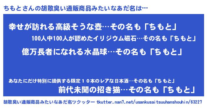 | ヘコむあだ名 | 『ちもにゅー』『牛乳』『ちもを』 |