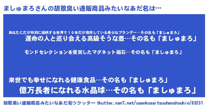 | ヒーロー風カッコイイあだ名 | 『慈愛の使者ましゅまろ』『仮面マシダー』 |