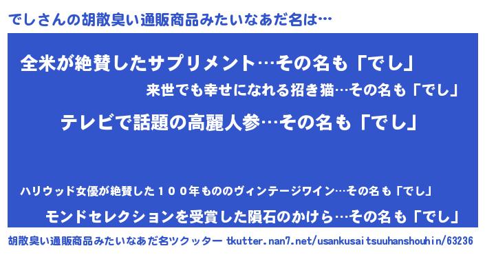 | ヘコむあだ名 | 『でしを』『でし(笑)』『でしもー』 |