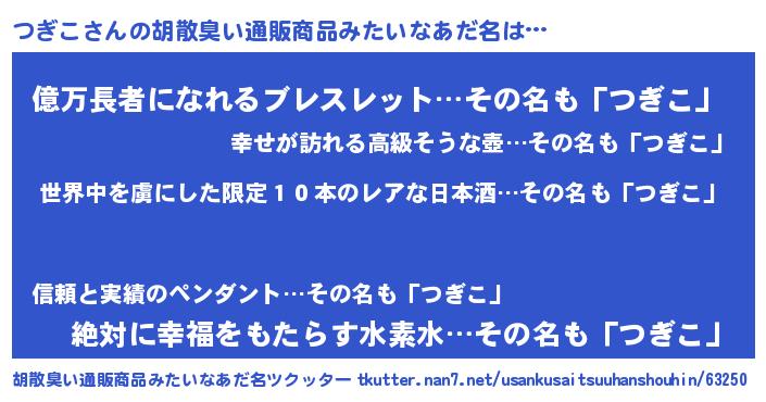 | 意味不明あだ名 | 『住所不定無職つぎこ(53歳)』 |