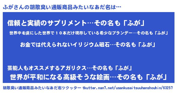 | ヘコむあだ名 | 『ふが太郎』『牛乳』『ふが(笑)』 |