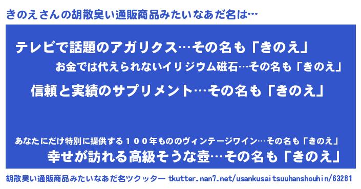 | 意味不明あだ名 | 『とにかく怪しいきのえ』『自称きのえ』 |