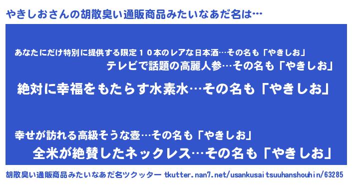 | ヘコむあだ名 | 『やきしお(遠い目)』『やき太郎』 |