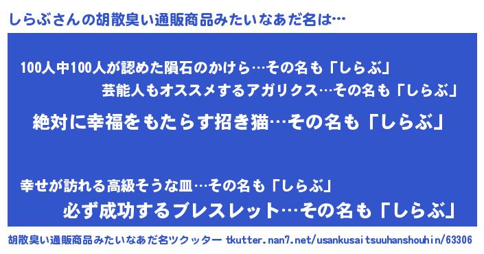| ヘコむあだ名 | 『しらぶ(笑)』『しらもー』『つくし』 |