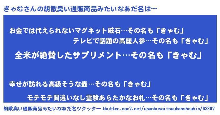 | 男性向けラノベタイトル風あだ名 | 『きゃむ~年齢イコール彼女いない歴の魔法使い~』 |