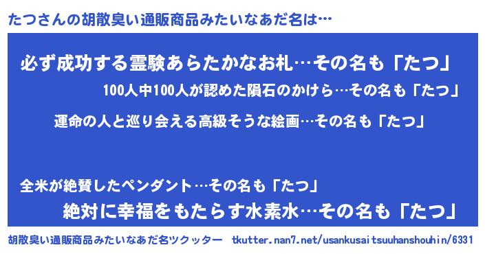 | ヒーロー風カッコイイあだ名 | 『ウルトラたつマン』『スーパータツ』 |