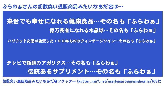 | ヘコむあだ名 | 『ふらわぁ(笑)』『ふらっちょ』 |