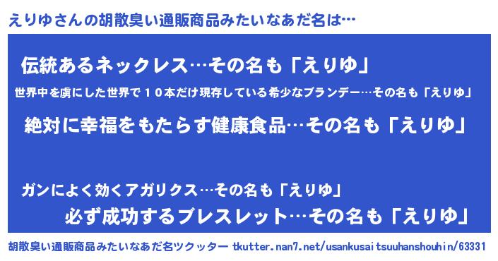 | ヘコむあだ名 | 『えりゆ(笑)』『えり太郎』 |