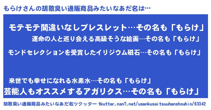 | ヘコむあだ名 | 『もらにゅー』『豆乳』『もらけ(笑)』 |