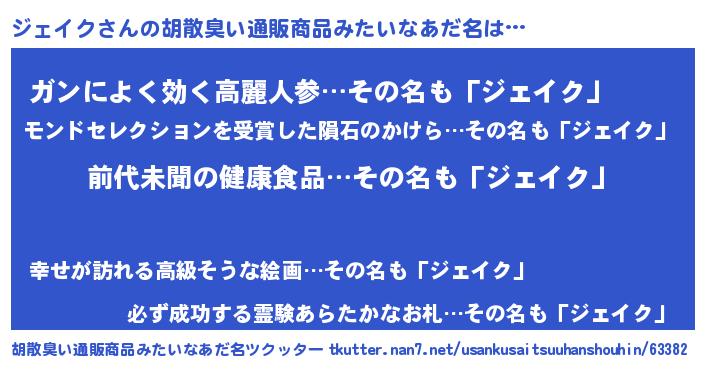 ジェイクさんの胡散臭い通販商品みたいなあだ名をツクッター!