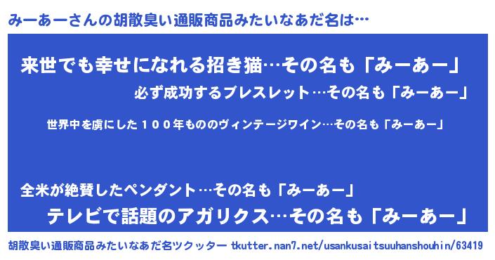 | 意味不明あだ名 | 『住所不定無職みーあー(13歳)』 |