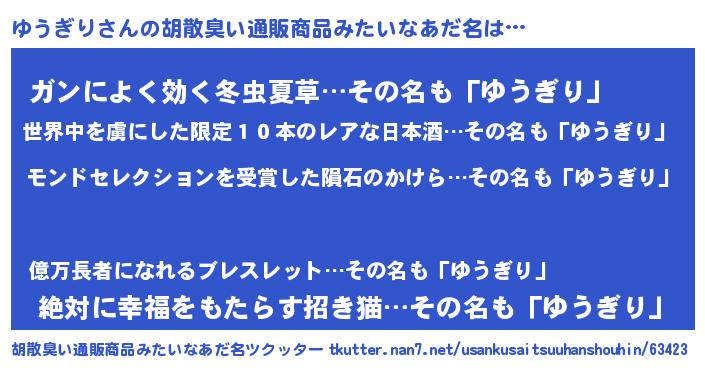 | ヒーロー風カッコイイあだ名 | 『天空の使者ゆうぎり』『ネオユウギリ』 |