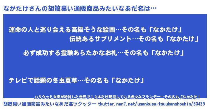 | 男性向けラノベタイトル風あだ名 | 『なかたけの憂鬱』『ナカタケスレイヤー』 |