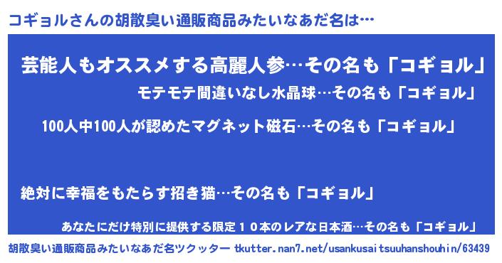 | 恥ずかしいあだ名 | 『ボンバーヘッドコギ』『コギちん』 |