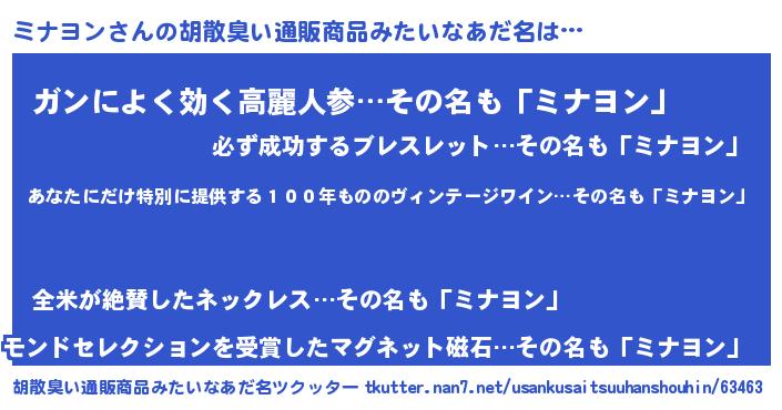 | ことわざ | 壁に耳あり障子に目あり『壁にミナヨン障子にミナヨン』 |