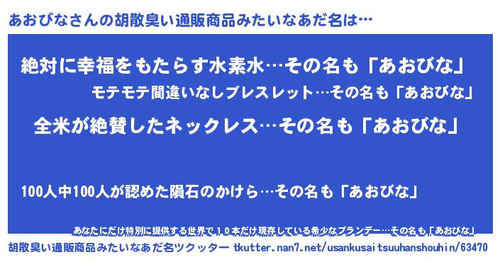 | ヘコむあだ名 | 『あお太郎』『あおびな(笑)』 |